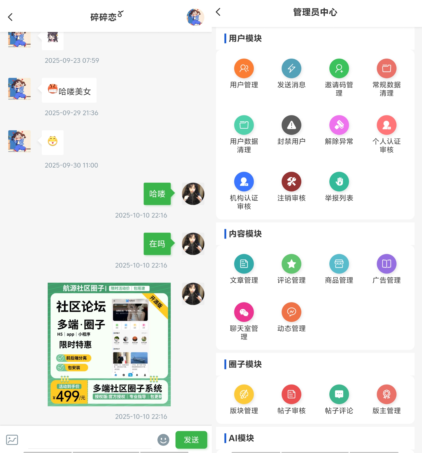 拥有用户私信,群聊等基础的通讯功能(非即时通讯)