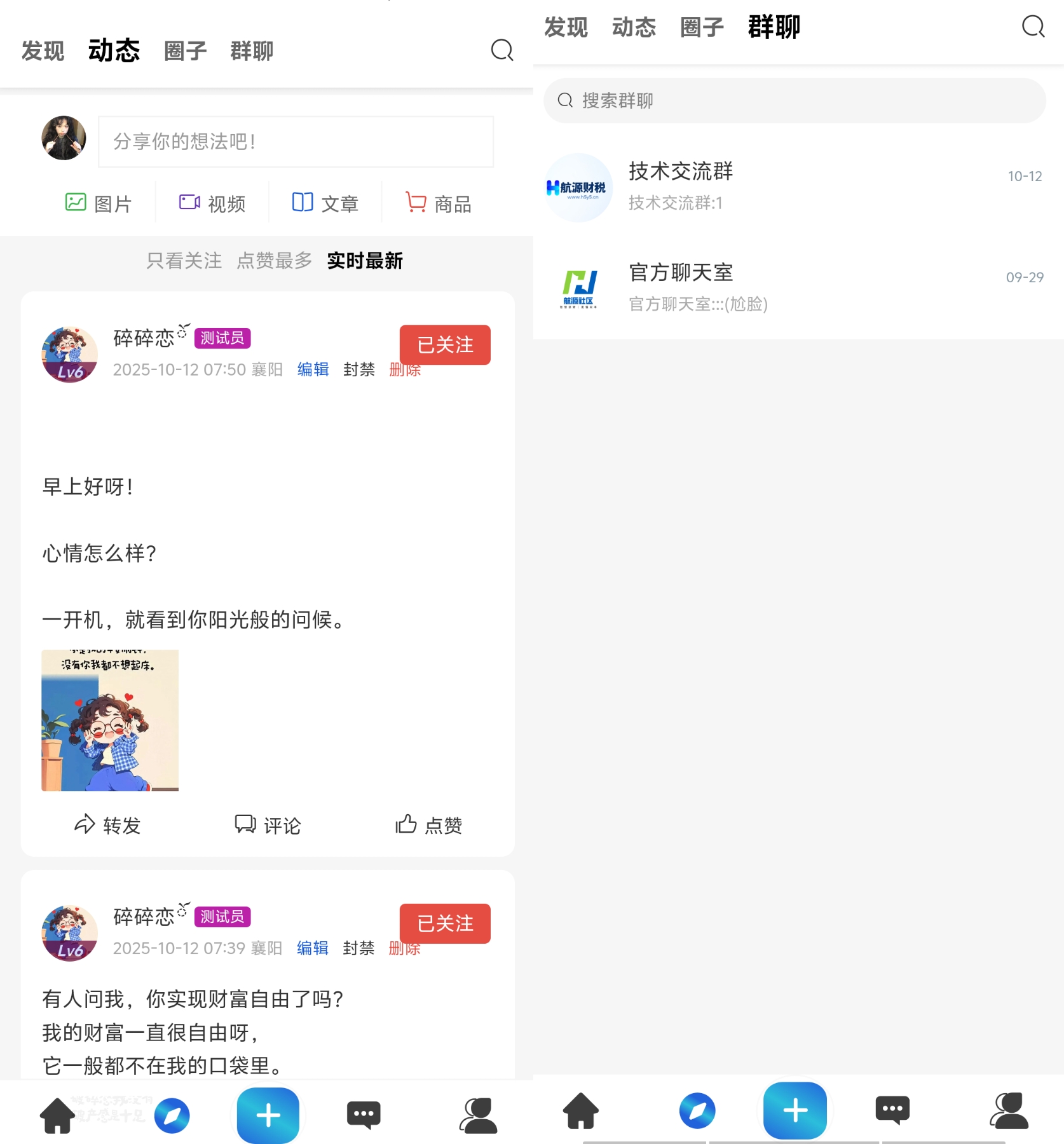 完善的帖子模块,适合用来运营校园交友社区,兴趣论坛等...